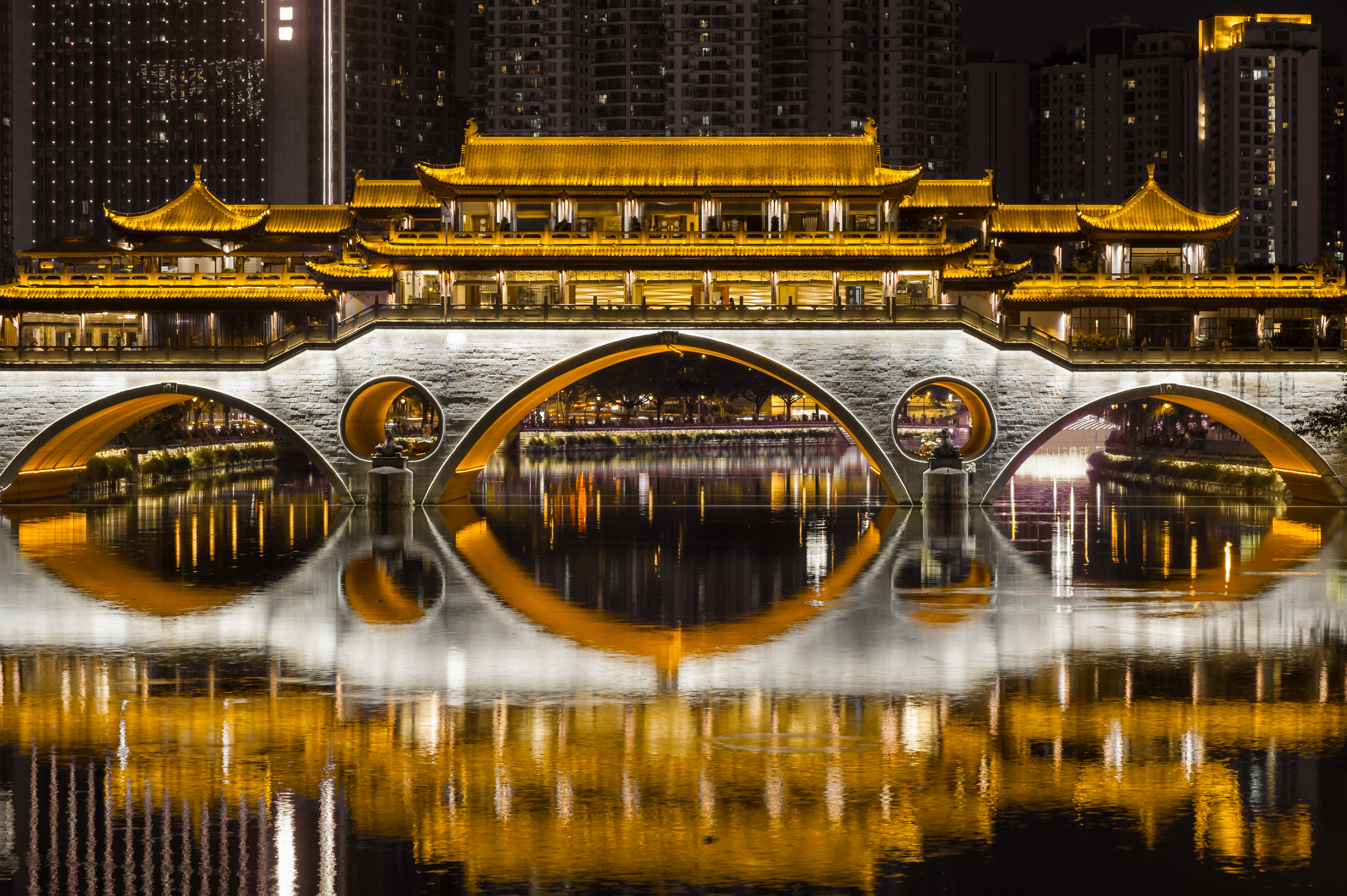 横跨府河之上的安顺廊桥,是成都的标志性建筑。在安顺廊桥上走一走,听一听桥边的演奏,解压又放松,而且廊桥的夜景很美,一定要晚上来,夜晚亮灯后的廊桥灯光璀璨,桥身灯光与江水交相辉映,氛围感顺佳拉满,既浪漫梦幻又充满了历史感,拍照超出片!(廊桥开关灯时间:一般是19:30左右亮灯,22:00左右关灯)