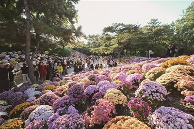 | 走进日坛公园菊花谷,宛如进入了一片菊花的海洋,市民赏菊的传统更加时尚了 |