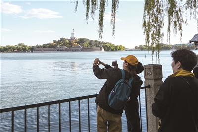 | 走在秋日的北海公园,波光粼粼的水面映衬着白塔,显得格外的宁静 |