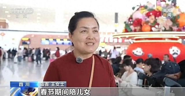 旅客 王女士:我是从甘肃兰州过来的,今年春节期间陪儿女,在成都过年。与往年不一样,往年都是他们陪我们过年,今年我们陪他们来过年,玩得也挺好的。