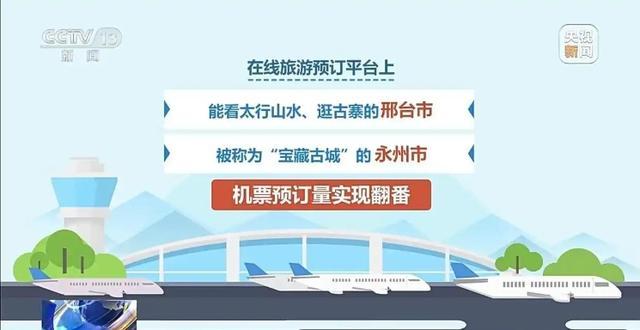记者发现春节期间,不只是四川西昌,飞往多个小机场所在城市的旅客量同比大幅攀升。在线旅游预订平台上,能看太行山水、逛古寨的邢台市,被称为“宝藏古城”的永州市,机票预订量实现翻番。飞往武夷山市的旅客量同比增长1.6倍,飞往岳阳市的旅客量同比增长96%。